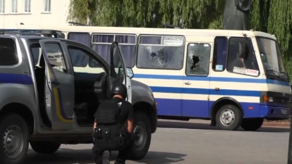Очевидці кажуть, що на склі захопленого автобуса є отвори від куль.