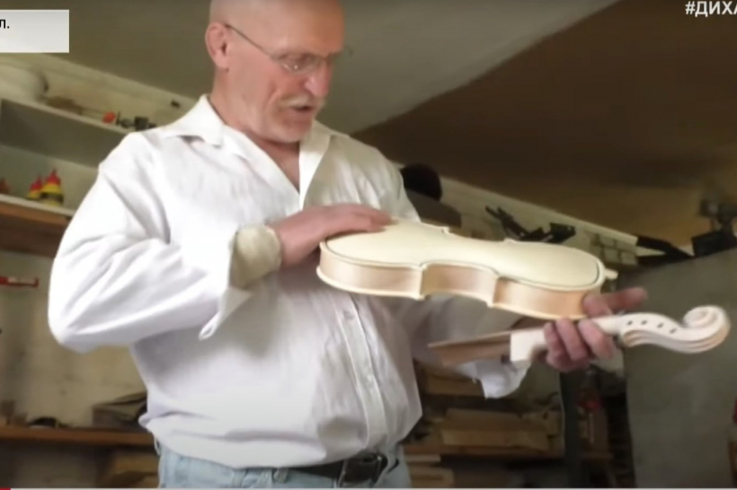 У руках 70-річного Павла Брижатого бруски деревини перетворюються на скрипку. Вже готова основа чергового інструмента. Далі буде його ладнати та усувати недоліки.