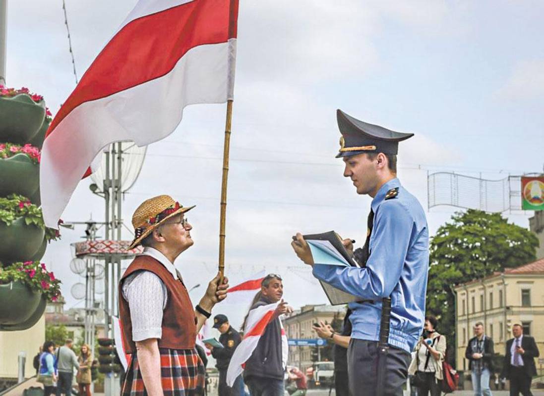 “Мене вже всі правоохоронці знають, — сміється жінка. — Під час останнього затримання поводилися зі мною ввічливо. Можливо, зважають на мій вік. Але постійно забирають у мене біло-червоно-білий прапор. Бояться його”.