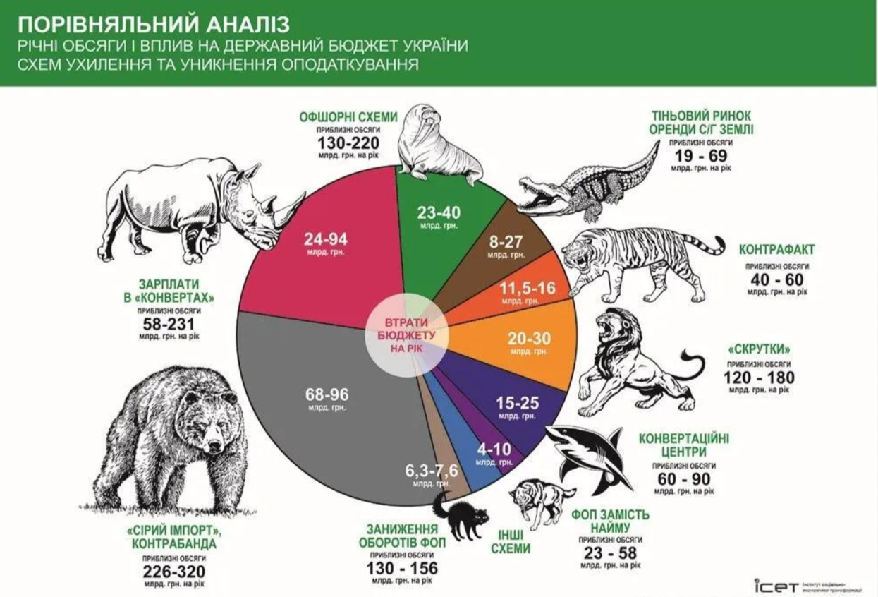 "Тож, підсумовуючи всі види схем, отримуємо втрати бюджету та Пенсійного фонду від різних видів зловживань на суму від 24 млрд до 94 млрд грн на рік. Схожі цифри були й попереднього року", – заключив Гетман.