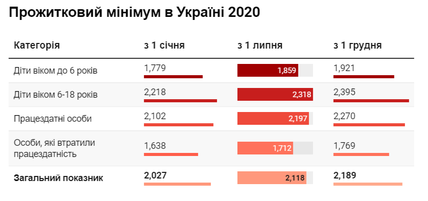 З 1 грудня прожитковий мінімум зросте з подальшими змінами у липні 2021 та грудні 2021. Відповідні цифри заклали у державному бюджеті-2021, який прийняли у першому читанні на засіданні Ради 5 листопада. За відповідне рішення проголосували 275 парламентарів.
