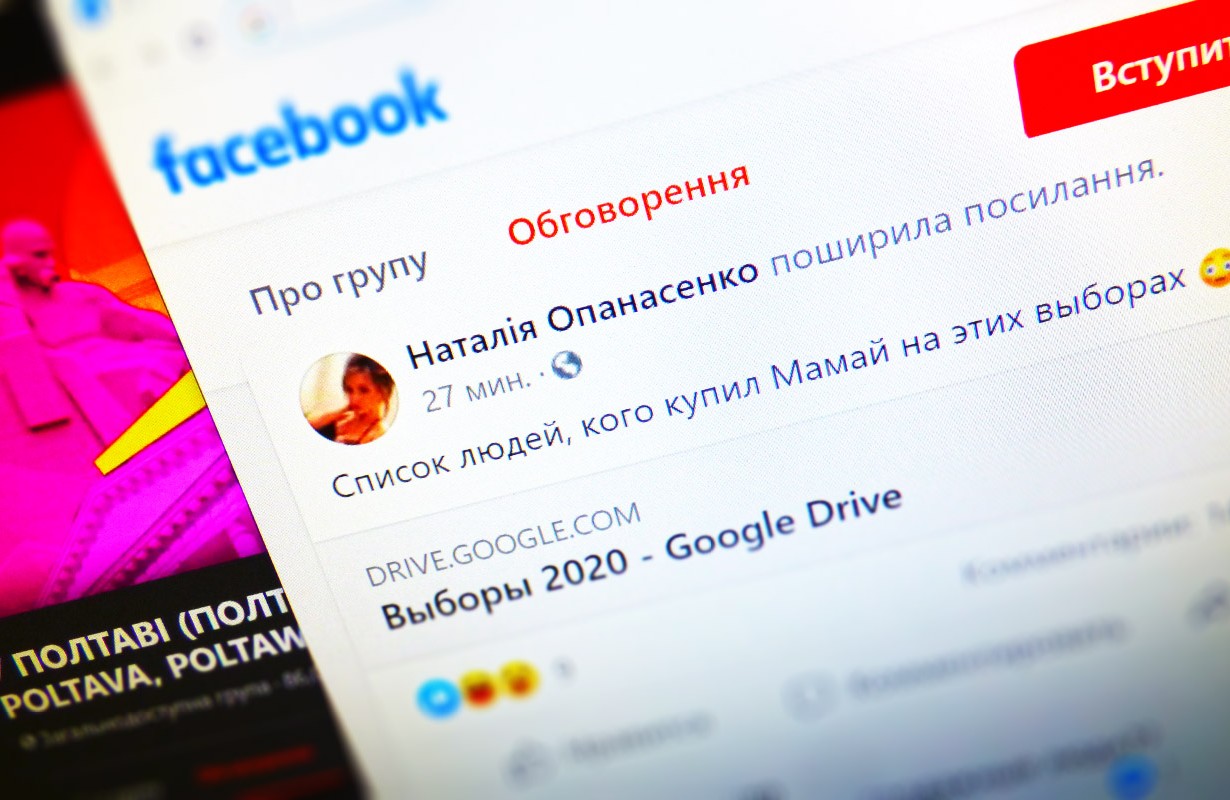 Посилання на теку на гугл-диску під назвою «Выборы 2020» опублікували з фейкового акаунту «Наталія Опанасенко» — у групі «У Полтаві (Полтава, Poltava, Poltawa)» в фейсбуці. На сьогодні, це найбільша полтавська фейсбук-спільнота, яка має понад 86 тисяч підписників. Основними її адміністраторами є чинні або колишні працівники «PTV Полтавське телебачення».