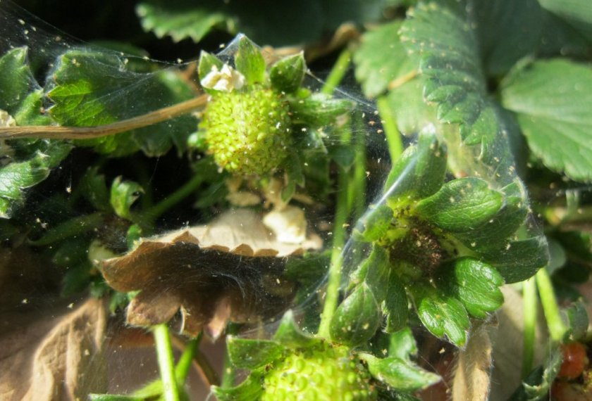 Суничні кліщі харчуються клітинним соком рослин, через що листя стає олійним і зморшкуватим. А через те, що виникає дефіцит елементів живлення, ягоди виростають дрібними.