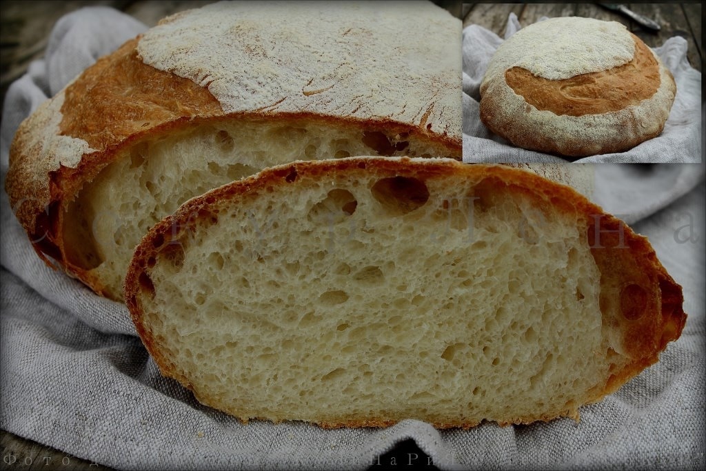 Вранці спекти під ковпаком. Перших 20 хвилин — при 240 градусах. Далі ковпак забрати і допікати при 200 градусах хвилин 25-30. Остудити готовий хліб на решітці.