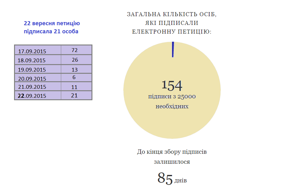 На вечір 23 вересня ПЕТИЦІЮ щодо відновлення індексації пенсій на сайті Президента України підписало 155 людей. За 22 вересня – долучився 21 голос.