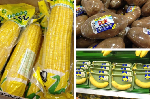 Стремление к максимальному удобству для покупателя заставляет магазины применять всё больше и больше упаковки даже в тех случаях, когда без неё можно прекрасно обойтись. Старайтесь вообще отказаться от заключённых в пластиковую оболочку фруктов и овощей и переместиться на соседний рынок, где всё это можно купить без дополнительных обёрток.
