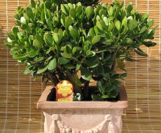 Название «денежное дерево» пошло оттого, что листья этого деревца похожи на монетки. По фен-шую считается, что это дерево, если его правильно расположить в квартире, поправит финансовое положение. Для этого нужно поместить толстянку в светлой зоне богатства на южном или юго-восточном окне. Повязанная на дерево красная ленточка будет способствовать вашему обогащению. Богатство, по этой теории, накапливаем в мясистых листьях деревца, а значит чем больше листьев и лучше их состояние, тем богаче и удачней будут его владельцы. Округлые формы толстянки считаются источником положительным элементом, который нейтрализует все негативные и отрицательные слова и эмоции, этим самым гармонизируя атмосферу в квартире.