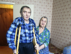 — Я даже представить себе не могла, что на мою седую голову такая беда придет! — сокрушается Тамара Яковенко. — Жили себе с мужем, век доживали. Ему тяжело, я все время возле него. Когда он сначала один инсульт перенес, потом второй, с ним видите, что сталось? — женщина показывает на худенького, иссушенного болезнями старичка, который с трудом сидит на кровати. Левый глаз у дедушки после инсультов не открывается. — Конечно, Володя сам ходить не может, я везде с ним выхожу. А в этом году еще и со мной беда приключилась. Вела деда под руку через дорогу, оступилась, упала и поломала плечо. Как мы с ним вдвоем больные выкручивались — и в магазин сходить, и поесть приготовить, — не знаю. А тут новая напасть на нас!