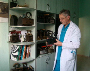 В городской больнице №10 много лет проработал врач Виктор Калошин. Его знают здесь не только как хирурга с золотыми руками, но и как заядлого собирателя. Его коллекция из более, чем 120 старинных утюгов способна удивить и восхитить самого придирчивого скептика. Виктор Ионович хранит свою коллекцию прямо в рабочем кабинете. А началось его увлечение более 30 лет назад:
