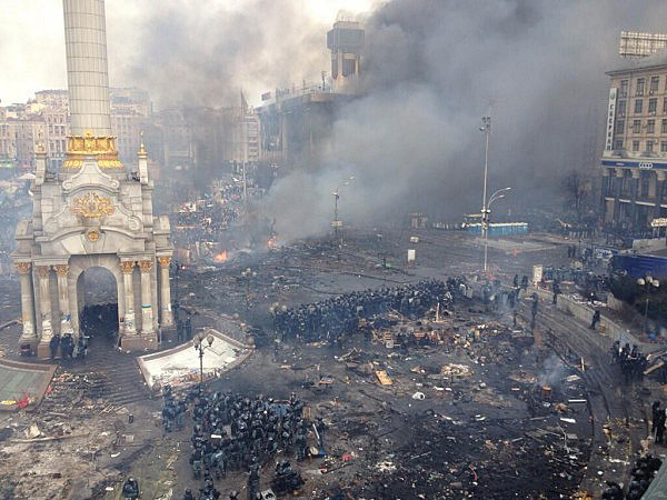 К вечеру 18 февраля события на Майдане Незалежности в Киеве и прилегающих улицах носили характер точечных столкновений протестующих с силовиками, причем очевидный перевес был на стороне последних. Правоохранителям удалось оттеснить демонстрантов непосредственно на Майдан и, разрушив тяжелой техникой часть баррикад, сосредоточиться по периметру.