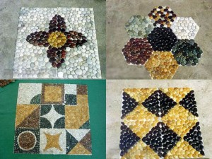 Выбор гальки многолик, разнообразие цветов и размеров предрасполагает к богатому разнообразию узоров из гальки для вашего пола.