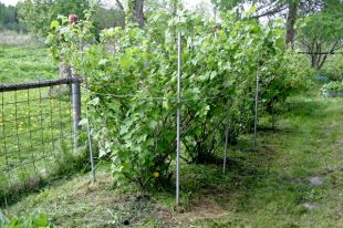 В дело вмешался случай. Несколько лет назад случилось зимнее нашествие мышей, они сильно обгрызли основания молодых деревьев. Повреждения пережили не все. По счастливому стечению обстоятельств деревья погибли не подряд, а через одно. И мы посадили вместо них кусты смородины. Вот такое расположение мне показалось более удачным: с одной стороны, для кроны деревьев остается больше места, с другой – посадки достаточно плотные. В этом случае шахматный порядок образуется за счет чередования кустов и деревьев.