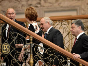 В это же время лица президентов Лукашенко и Порошенко оставались неизменны в своем эмоциональном наполнении. Александр Лукашенко сосредоточен и серьезен, а Петр Порошенко... откровенно говоря, испытывает дискомфорта от присутствия Путина.
