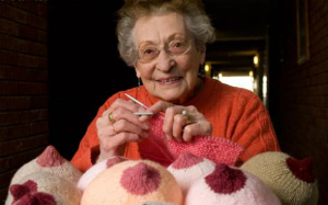 Вы, должно быть, ожидаете от своей бабушки вязаного для вас шерстяного свитера, но одна пенсионерка вопреки ожиданиям использует спицы для изготовления удивительной вязаной груди.