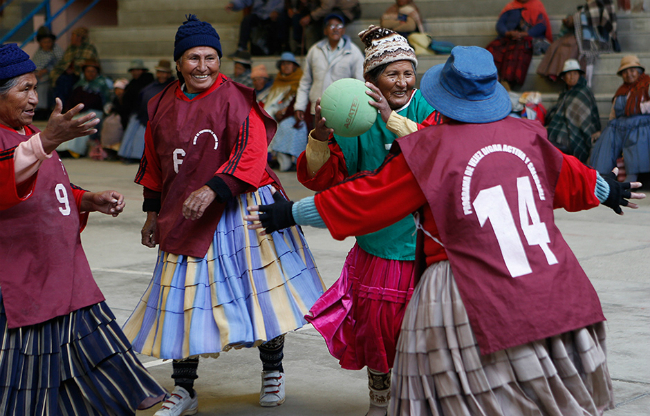 Аймара — одна из индейских народностей, проживающих в Боливии. Трудно представить себе более традиционных, старомодных людей: даже в наши дни они ходят в национальной одежде. Но не все аймара таковы: некоторые awichas, то есть бабушки, настолько продвинуты, что играют в гандбол. Каждую среду пожилые дамы, многим из которых за 80, азартно бросаются мячом.
