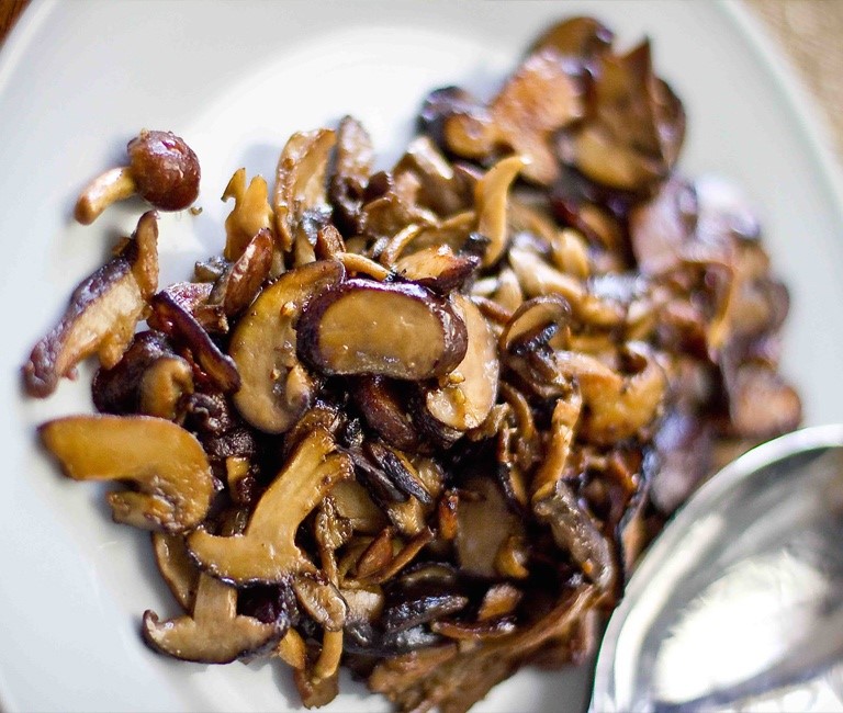 Бросьте грибы на разогретую сковородку, помешивайте, пока они не станут коричневыми, и добавьте оливкое масло и чеснок. Добавьте белое вино, а когда оно испарится, посолите.
