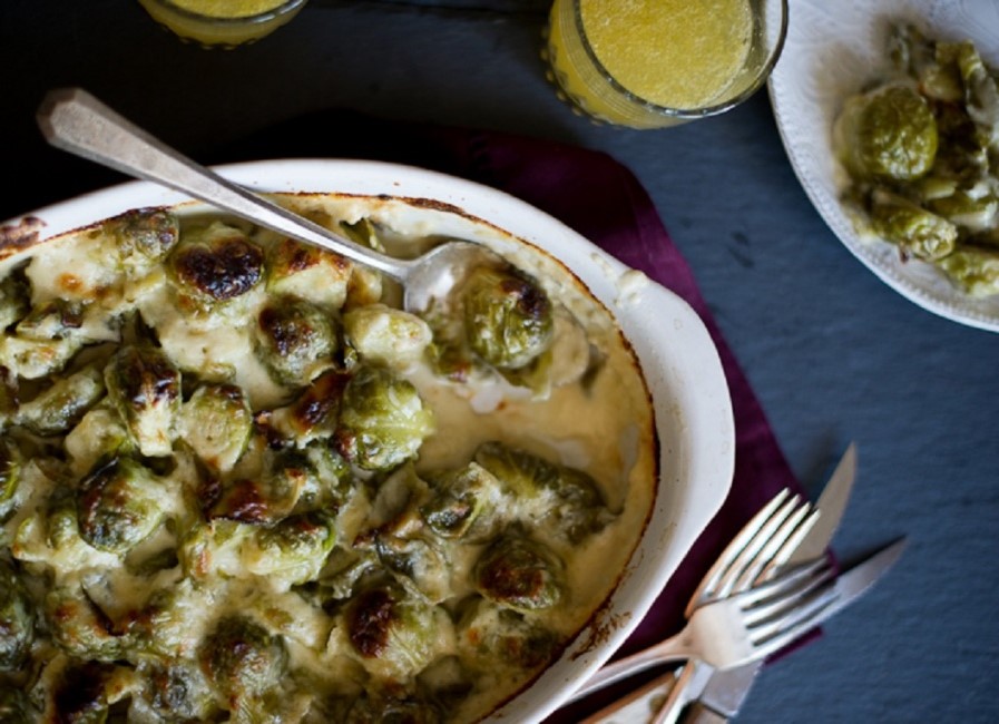 Сварить брюссельскую капусту. Смешать сливочное масло, молоко, соль, сыр, майонез и черный перец. Добавить в смесь брюссельскую капусту и вылить все в форму. Запекать в духовке в течение 30-45 минут.