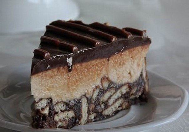 Торт с печеньем, шоколадом и сгущённым молоком без выпечки