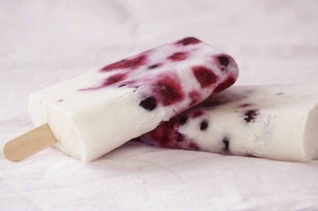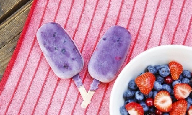 Это сделано по принципу «чем больше, тем лучше». Смешайте в блендере ананасовый сок, чернику, банан, клубнику и йогурт. Не забудьте оставить кусочки черники и клубники, которые будете заливать смесью в формочках.