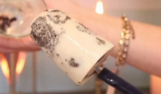 Заварите чай с сахаром и сгущенным молоком по вкусу. Залейте в формочки не до конца и поставьте на два часа в морозилку. Долейте сверху еще сливок и держите в морозилке до готовности.