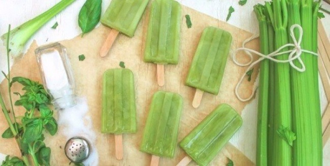 Несладкий, но освежающий лед можно приготовить из сельдерея. Натрите его на терке и выжмите сок через марлю. Смешайте в блендере с базиликом.