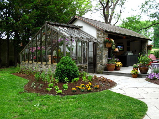 Установите пару кресел, и теплица станет не только полезным садовым объектом, но и дополнительной зоной отдыха. А, чтобы использовать такую оранжерею как настоящий зимний сад, нужно оснастить ее канализацией и водопроводом, системой отопления и подсветкой. Это потребует определенных затрат, но, если вы живете в загородном доме постоянно, позволит вам всю зиму радоваться зелени и цветению.
