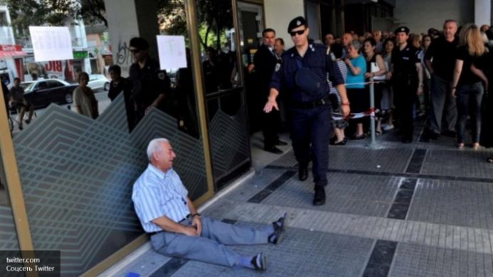 77-летний мужчина простоял в очередях в четырех банках в городе Салоники, надеясь получить пенсию собственной жены в объеме около 120 евро. Однако получив отказ на получение денежных средств в следующем банке, грек отчаялся, упал на асфальт и расплакался.