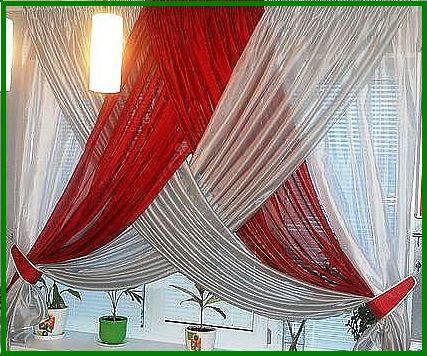 Шторы создают уют в помещении. Сшить шторы на кухню своими руками не очень сложно. Все зависит от модели штор, которую вы выбрали. Шторы бывают разными и из разных тканей. Обычные шторы из хлопчатобумажной или синтетической ткани, легкие шторы из органзы или тюли, шторы с ламбрекеном и на люверсах, французские и австрийские шторы, а также римские шторы. Выбирая ткань для штор ориентируйтесь на стиль интерьера кухни. Шторы из синтетических тканей практичнее и легче, а из натуральных тканей более плотнее. Главное в шитье штор правильно рассчитать расход ткани. При этом следует учесть, что во время шитья нужны будут дополнительно припуски на швы и подгибку. А если еще есть драпировка, то расход ткани увеличивается в среднем в 2,5 раза. Выкройки различных штор для кухни: от простых до сложных с ламбрекеном и драпировкой.