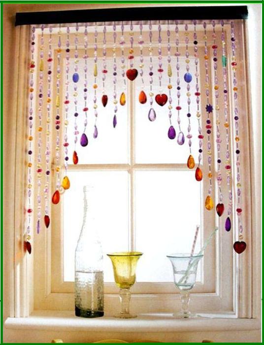 Еще шторы можно связать из пряжи или же сделать из бусин и разных тесемочек.