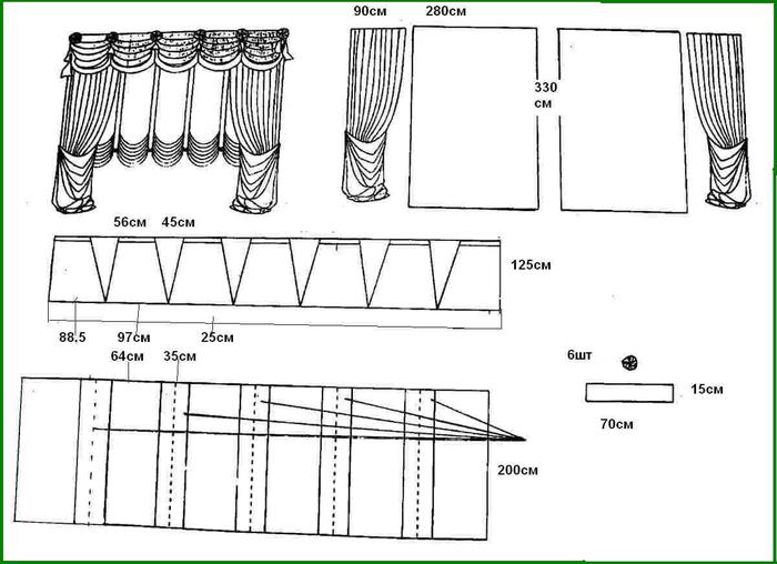 Для начала определитесь с фасоном штор, затем подобрав соответствующую выкройку можно определить нужное количество ткани.