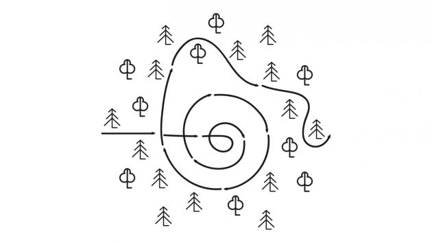 Выбирайте, будет ваша спираль закручиваться или раскручиваться, а лучше пройти маршрут в двух направлениях, чтобы повысить шансы на удачный поиск.