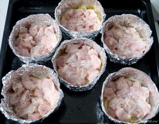 Очень понравился рецепт блюда из курицы. Такое куриное филе с картофелем, запечённое в кокотницах из фольги, отлично вписывается на любой стол и съедается с удовольствием. Оригинальная подача, даже тарелки не надо мыть. Думаю Вам тоже этот рецептик понравится. Знакомьтесь с ним.