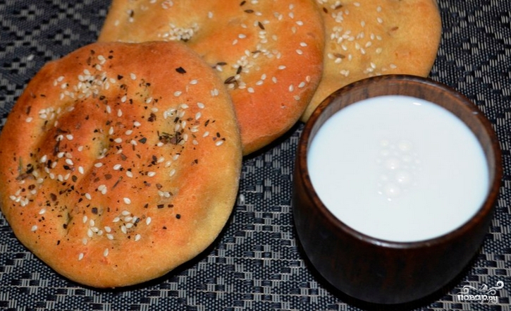 Выпекаем лепешки в духовке 20 минут, температура 200 градусов.