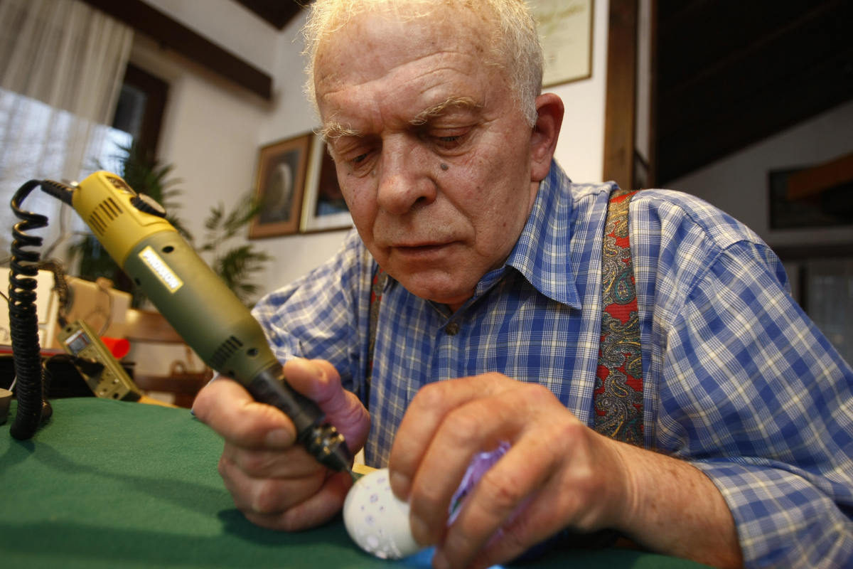 74-летний словенский художник Фрэнк Гром создаёт произведения искусства из яичной скорлупы уже почти 20 лет, с тех пор как вышел на пенсию.