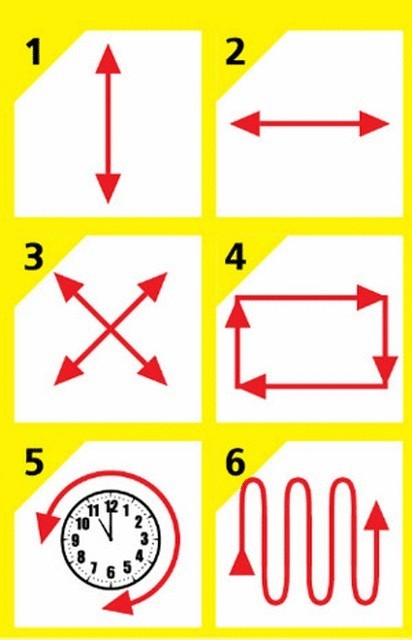 Глазная зарядка (см. схему на соседней странице) - утром перед завтраком, днем, вечером. Понедельник - среда: 3 повтора каждого из первых ПЯТИ упражнений. Шестое - «Змейка» - всегда выполняется только ОДИН раз (туда и обратно). Четверг - суббота - уже по 4. Воскресенье - выходной.