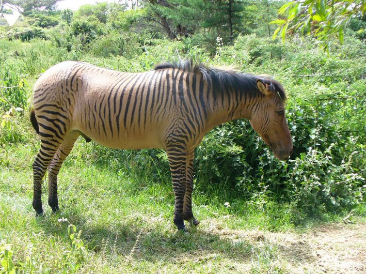 Для гибридов зебры с ослом характерен ремень на спине, на брюхе и «крест» на плечах. Jaglion (самец ягуар + самка лев)