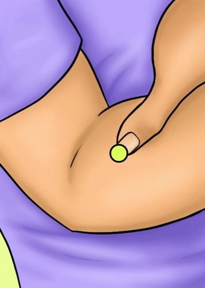 Выполняя точечный массаж для похудения, оказывайте на эту точку давление средней силы в течении двух-трех минут.