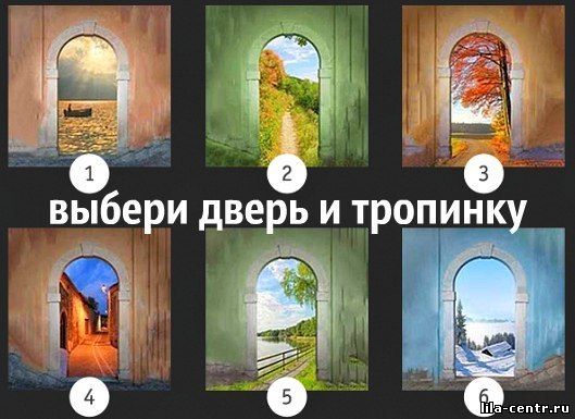 Всё, что вам понадобится, - это посмотреть на двери, открывающие всевозможные дороги. Не задумываясь, выберите одну, которая вам по душе. Та тропа, которую вы выберете, сможет рассказать вам о тайных сторонах вашего «Я» и ответит на давно терзающие вас вопросы. Главное ни чему не удивляться. Результаты, как правило, очень точные.