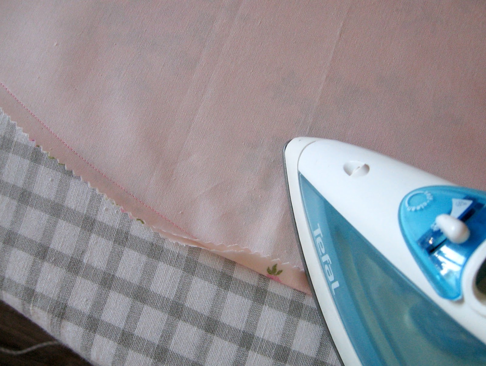 Теперь, не убирая доску, заверните на нее ткань и определите сколько вам надо на подгиб, сделайте отметку на ткани. Все, доску можно убрать. К только что сделанной отметке прибавьте 1 см. на припуск для шва.