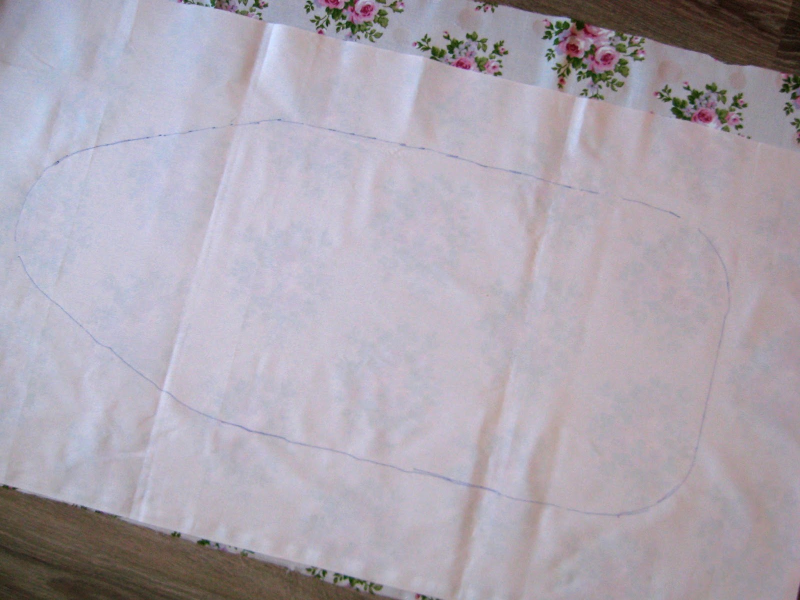 Кладем оба отреза лицевыми сторонами друг к другу, размещаем на них гладильную доску и обводим ее по периметру исчезающим маркером или ручкой. Я использую ручку фирмы Pilot с чернилами, исчезающими от нагревания.