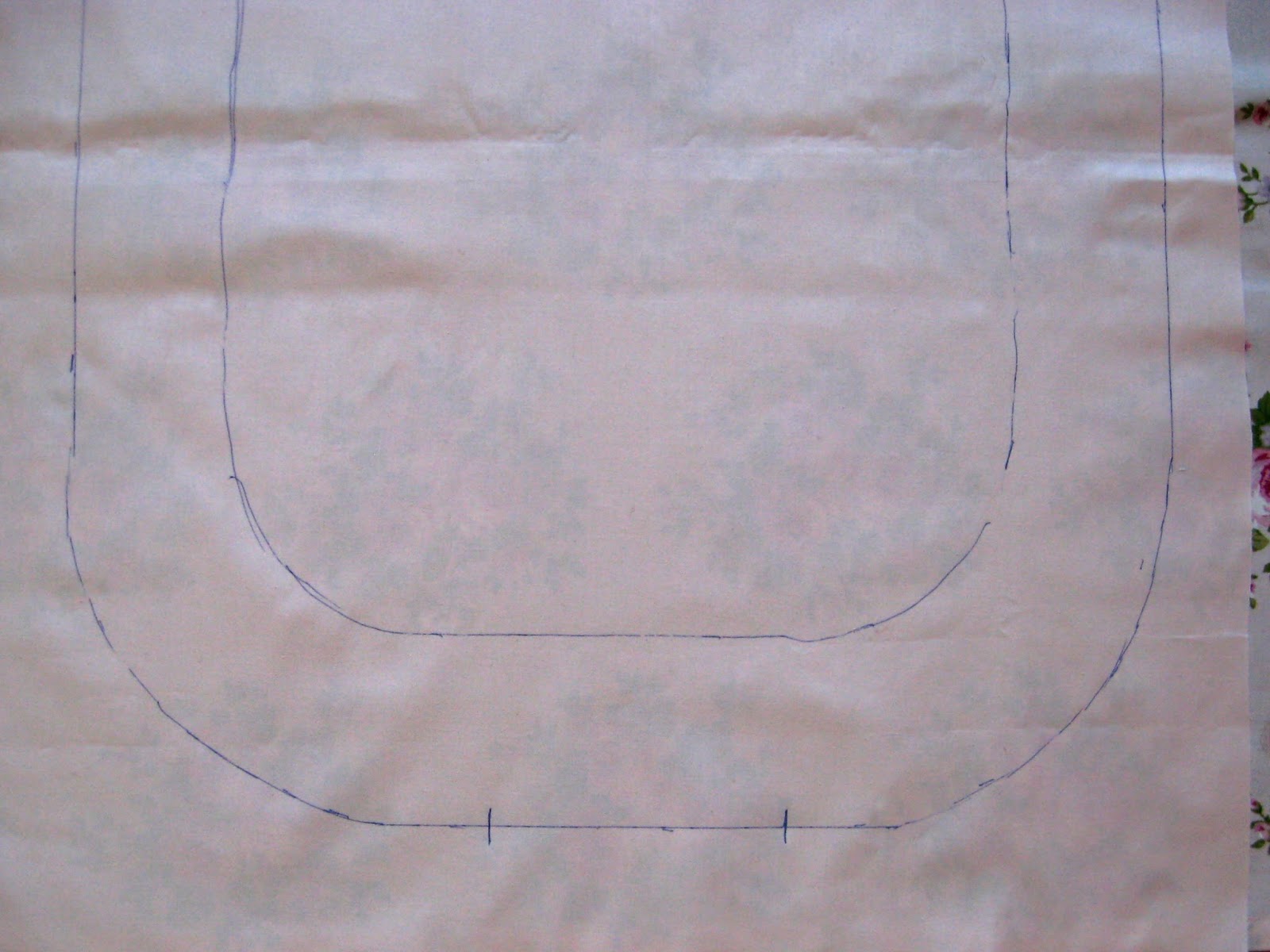 Соедините все эти отметки линией. Это будет линия выреза. С торца гладилки сделайте две отметки на расстоянии 10-15 см., это будет место для выворачивания. Здесь зашивать не будем.