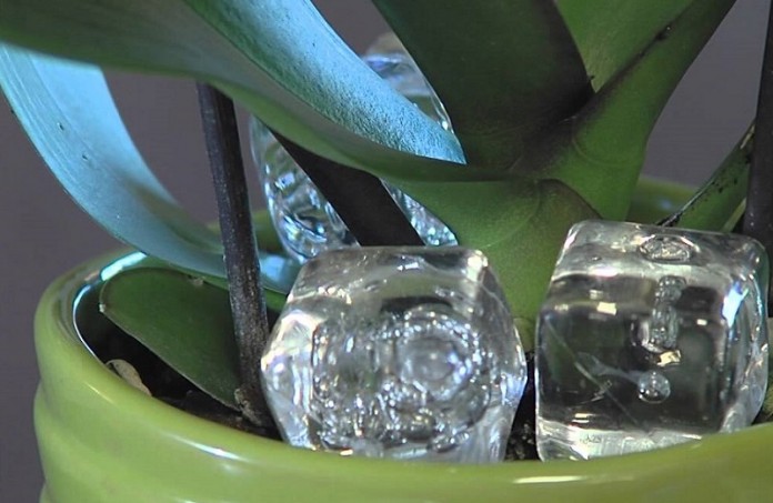 5. Вместо полива советуют помещать в горшок с орхидеей пару кубиков льда, так она скорее зацветет.