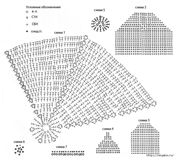Туловище: крючком связать цепочку из 8 в. п. нитью коричневого цвета, замкнуть ее в кольцо соед. ст. и вязать по схеме 1.