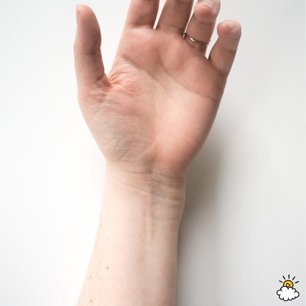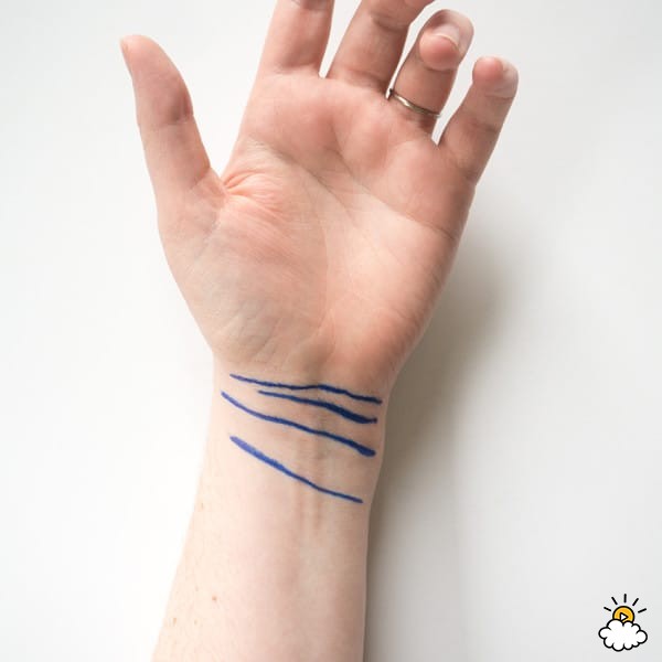 Положите доминирующую руку плашмя ладонью вверх. Взгляните на запястье, там, где оно соединяется с рукой. Вы увидите слабые горизонтальные морщины.