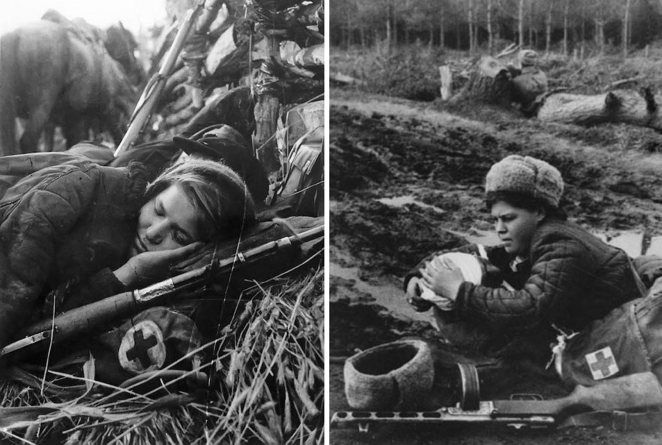 · «Под Севском немцы атаковали нас по семь-восемь раз в день. И я еще в этот день выносила раненых с их оружием. К последнему подползла, а у него рука совсем перебита. Болтается на кусочках... На жилах... В кровище весь... Ему нужно срочно отрезать руку, чтобы перевязать. Иначе никак. А у меня нет ни ножа, ни ножниц. Сумка телепалась-телепалась на боку, и они выпали. Что делать? И я зубами грызла эту мякоть. Перегрызла, забинтовала... Бинтую, а раненый: "Скорей, сестра. Я еще повоюю". В горячке...»