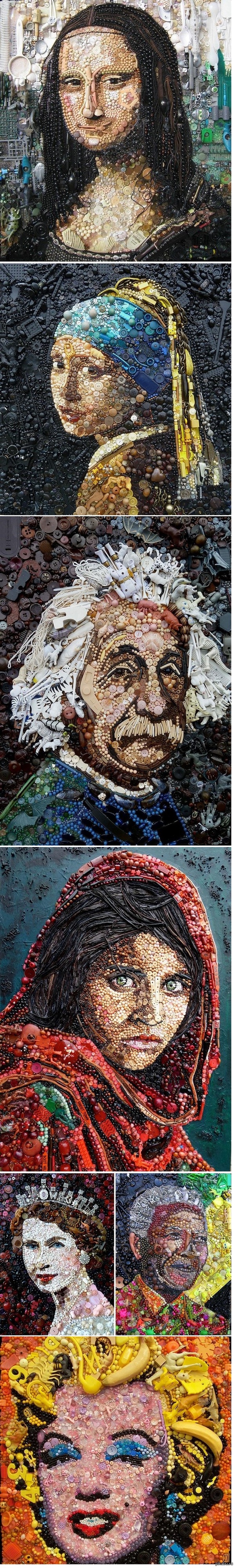 Творческий человек всегда ищет различные пути собственной реализации. 56-летняя британка мастерски воссоздает лица знаменитостей и легендарные произведения искусства из пуговиц, кусочков дешевой бижутерии, старых игрушек и не только.