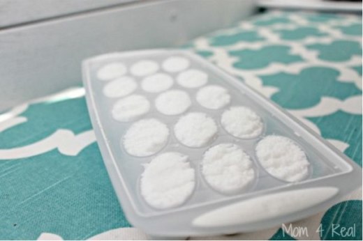 Смешайте все вышеуказанные ингредиенты как следует и спрессуйте в формочках для льда, которые очень удобно разделят средство на порции.