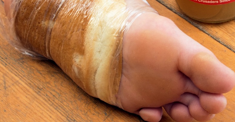 Примотай уксусный хлеб к ноге при помощи пищевой пленки.
