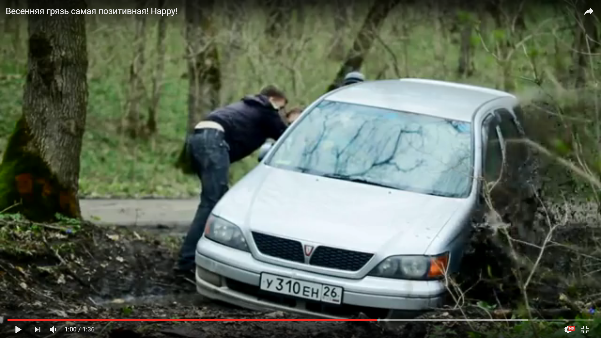 Как поступает большинство водителей, забуксовав в грязи? Я думаю, что Вы не раз наблюдали такую картину — они начинают ругаться. Но ведь можно и так: посмотрите, в этом видео ни у кого не испортилось настроение, никто никого не обидел и не упрекнул. Все веселы и продолжают все вместе радоваться жизни.