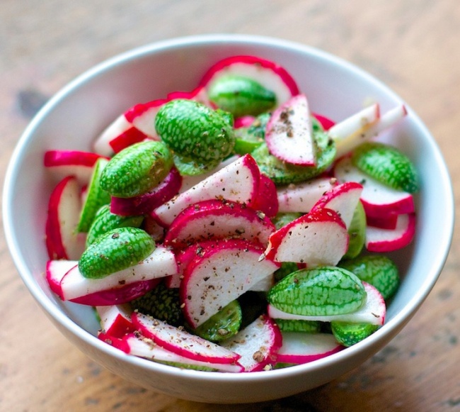 Употреблять в пищу огурцеарбузы можно свежими, как виноград, а можно делать салаты и мариновать, как огурцы.
